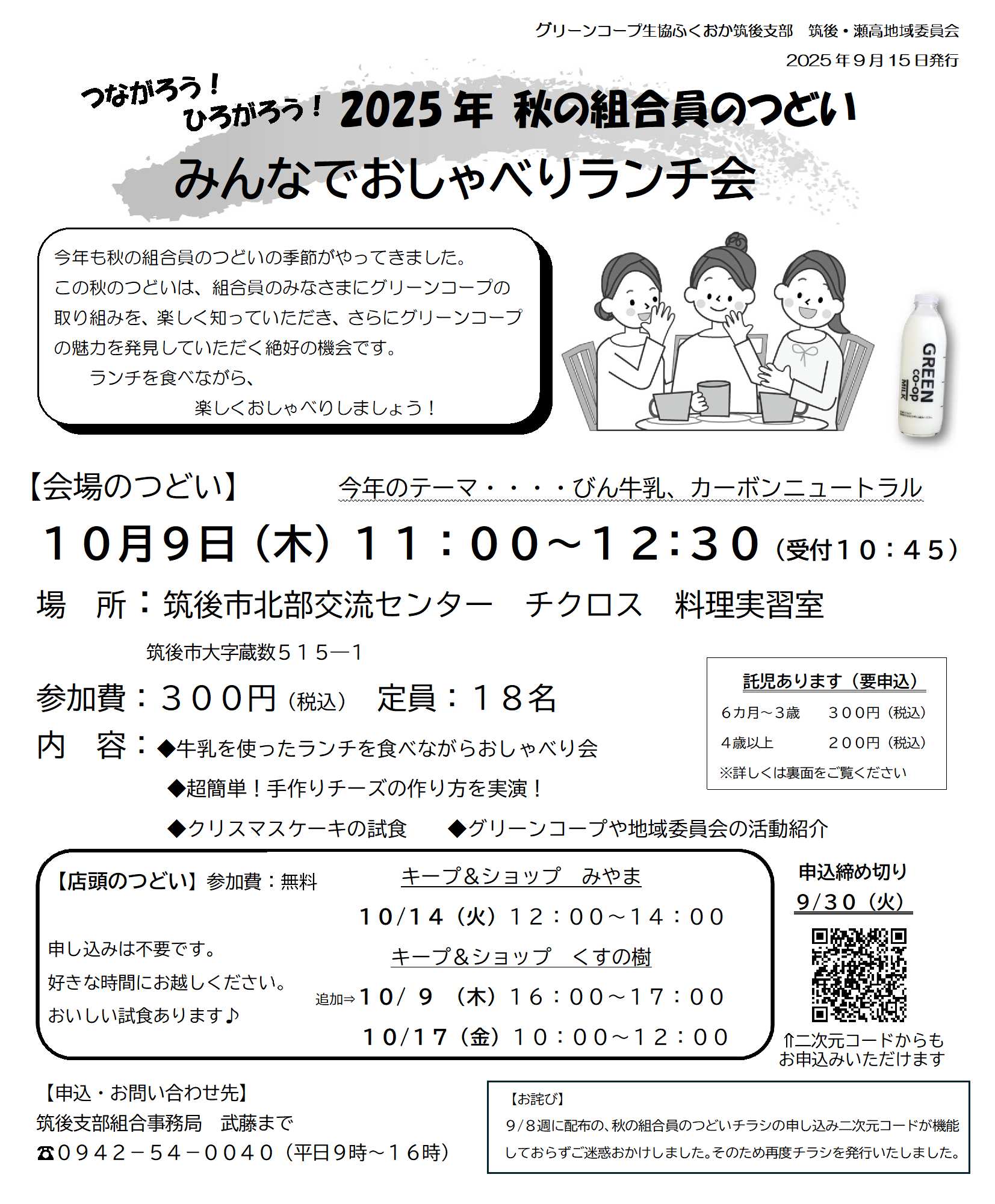 つながろう!ひろがろう!2025年秋の組合員のつどい「みんなでおしゃべりランチ会」