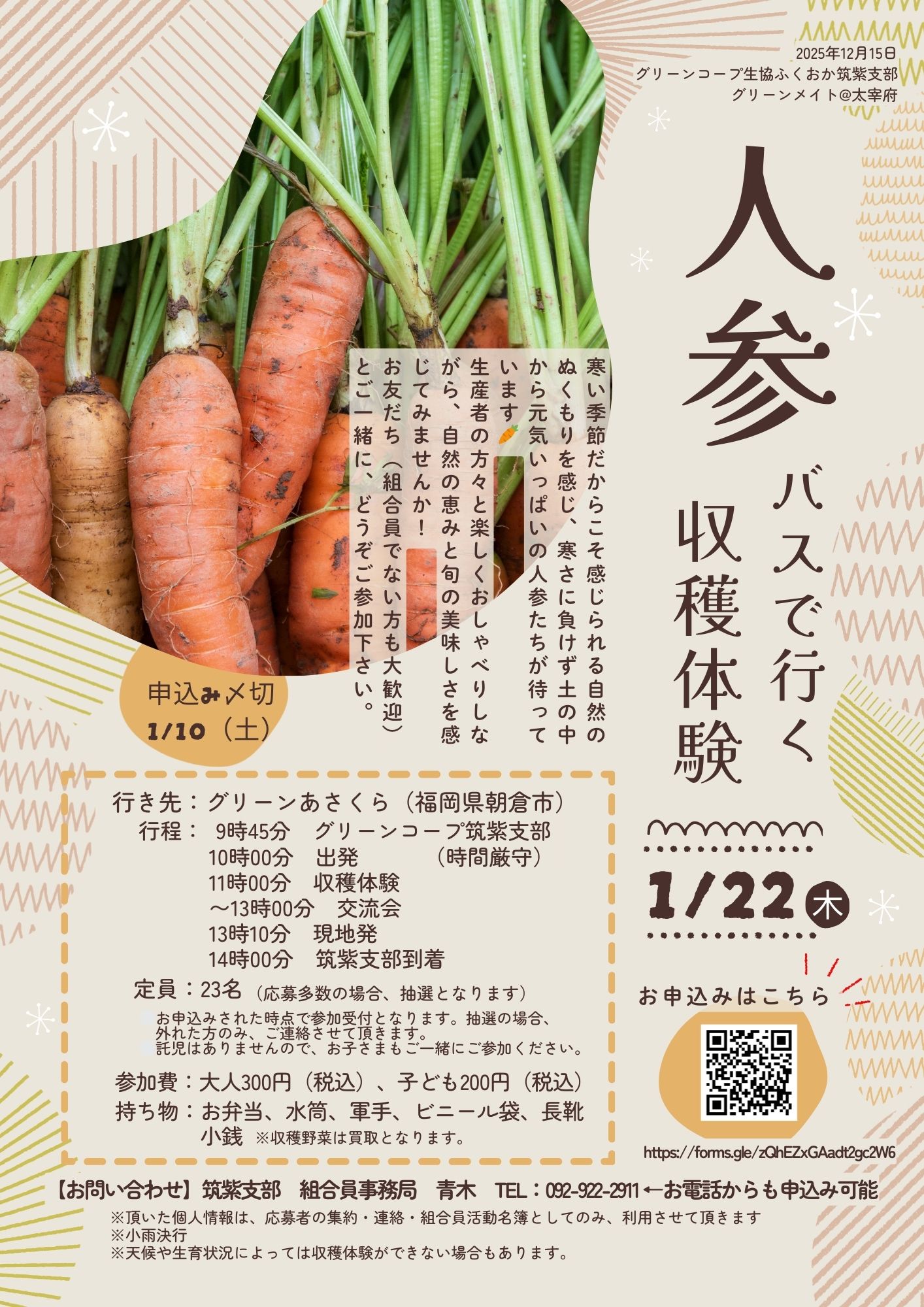 - グリーンコープ生協ふくおか筑紫支部 組合員事務局 青木(092-922-2911)