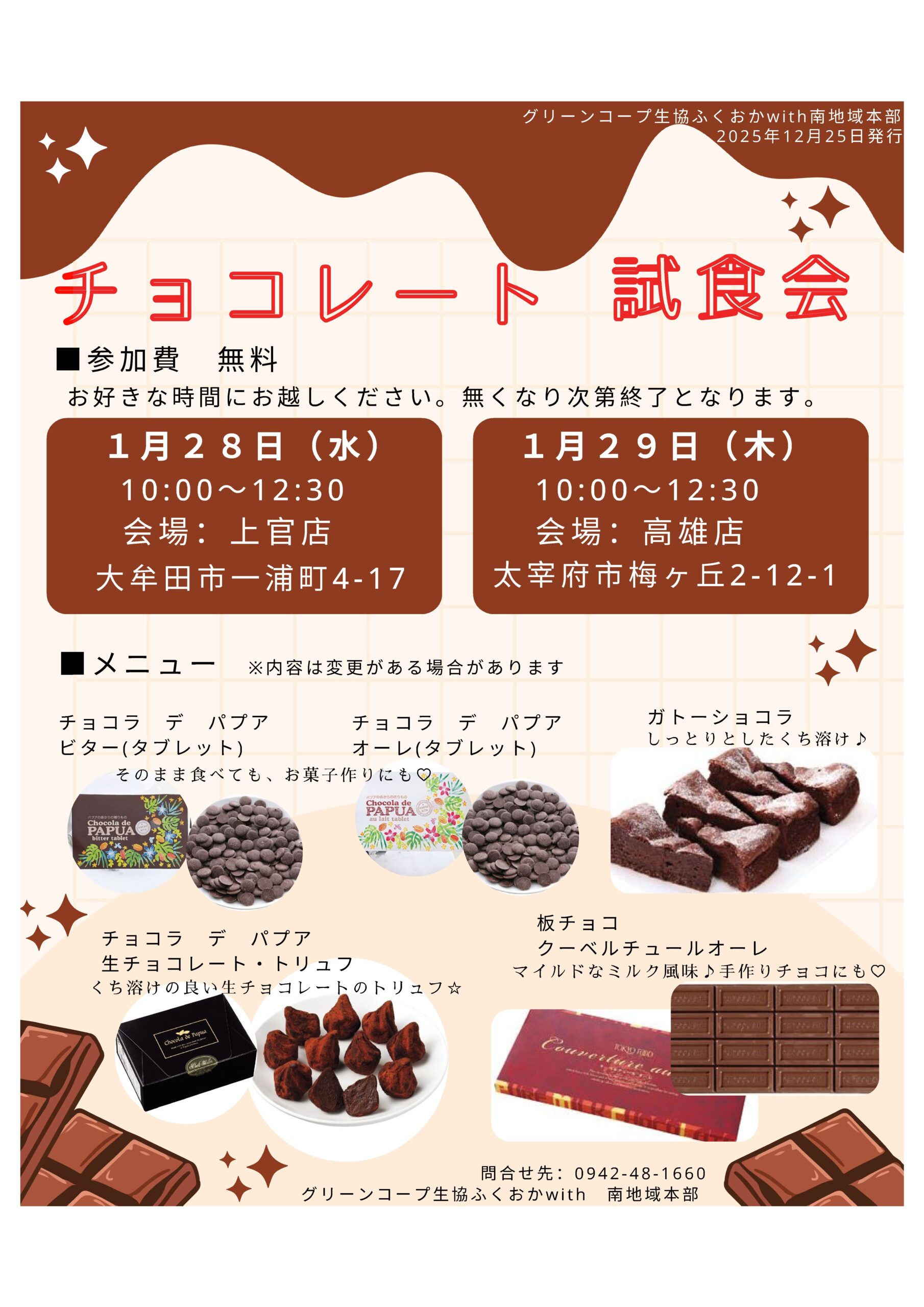 チョコレート試食会を開催しますので、お気に入りのチョコレートを見つけませんか?
