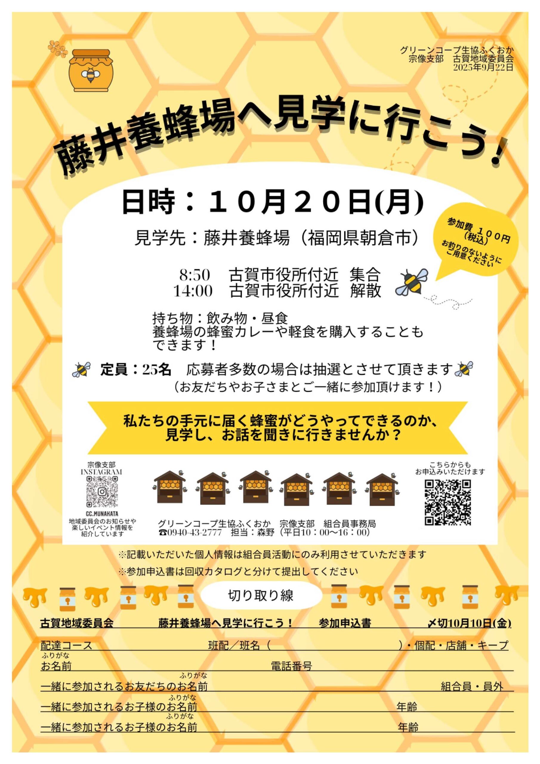 〈古賀地域対象エリアにお住まいの組合員と組合員ではないお友達がご参加いただけます〉