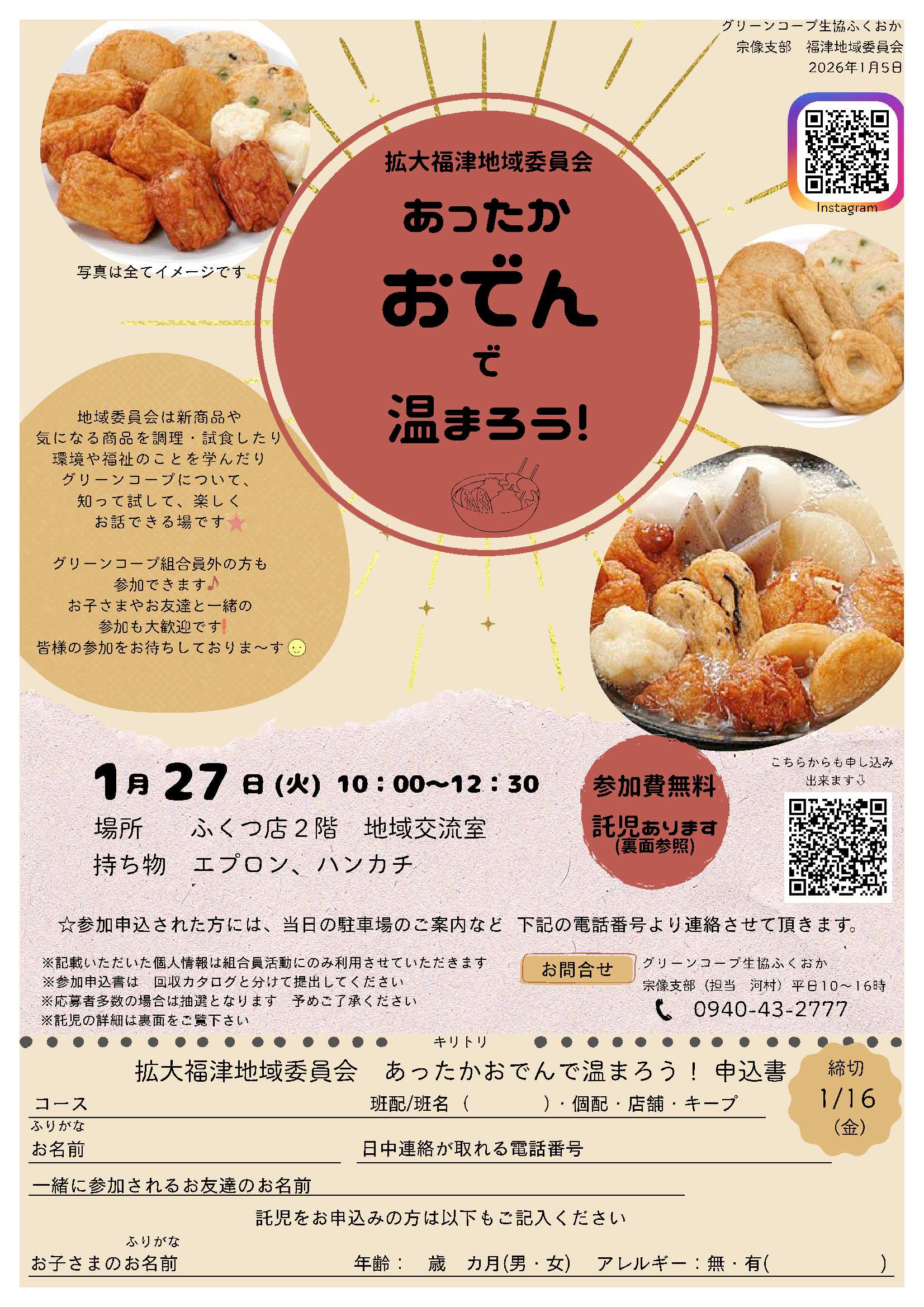 〈福津地域対象エリアにお住まいの組合員とそのお友達が参加できます〉
