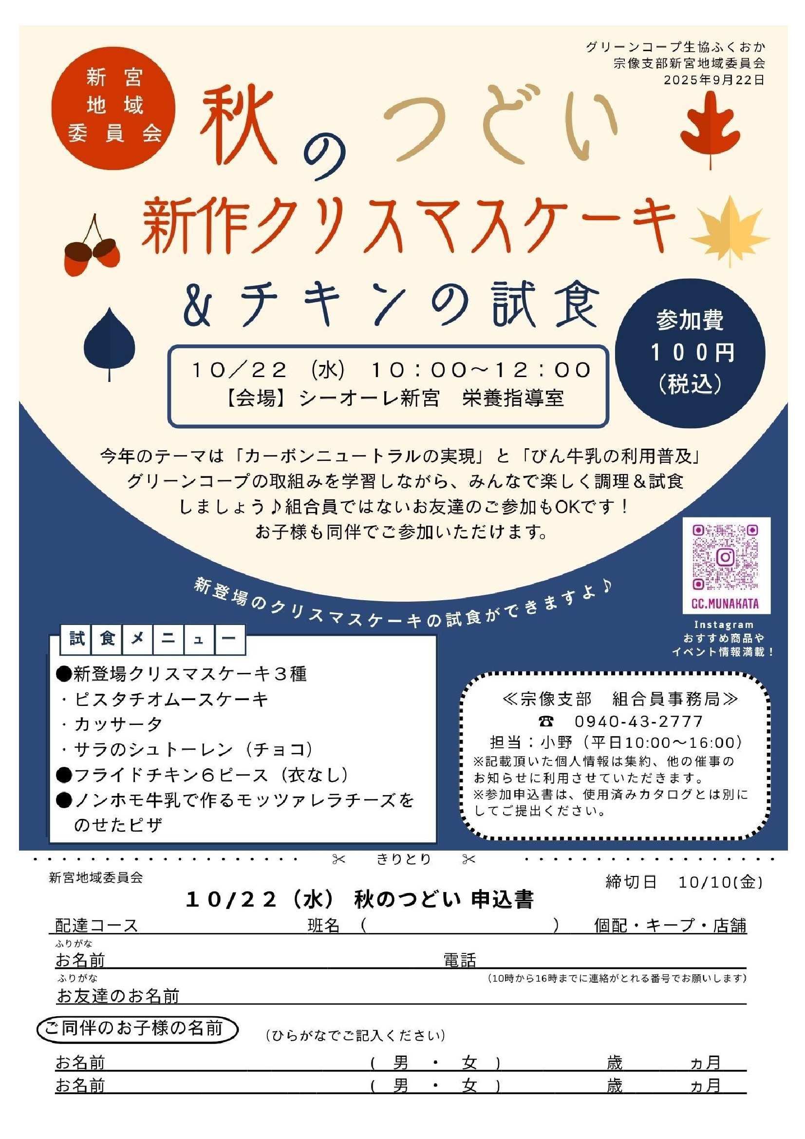 〈新宮地域対象エリアにお住まいの組合員と組合員ではないお友達がご参加いただけます〉