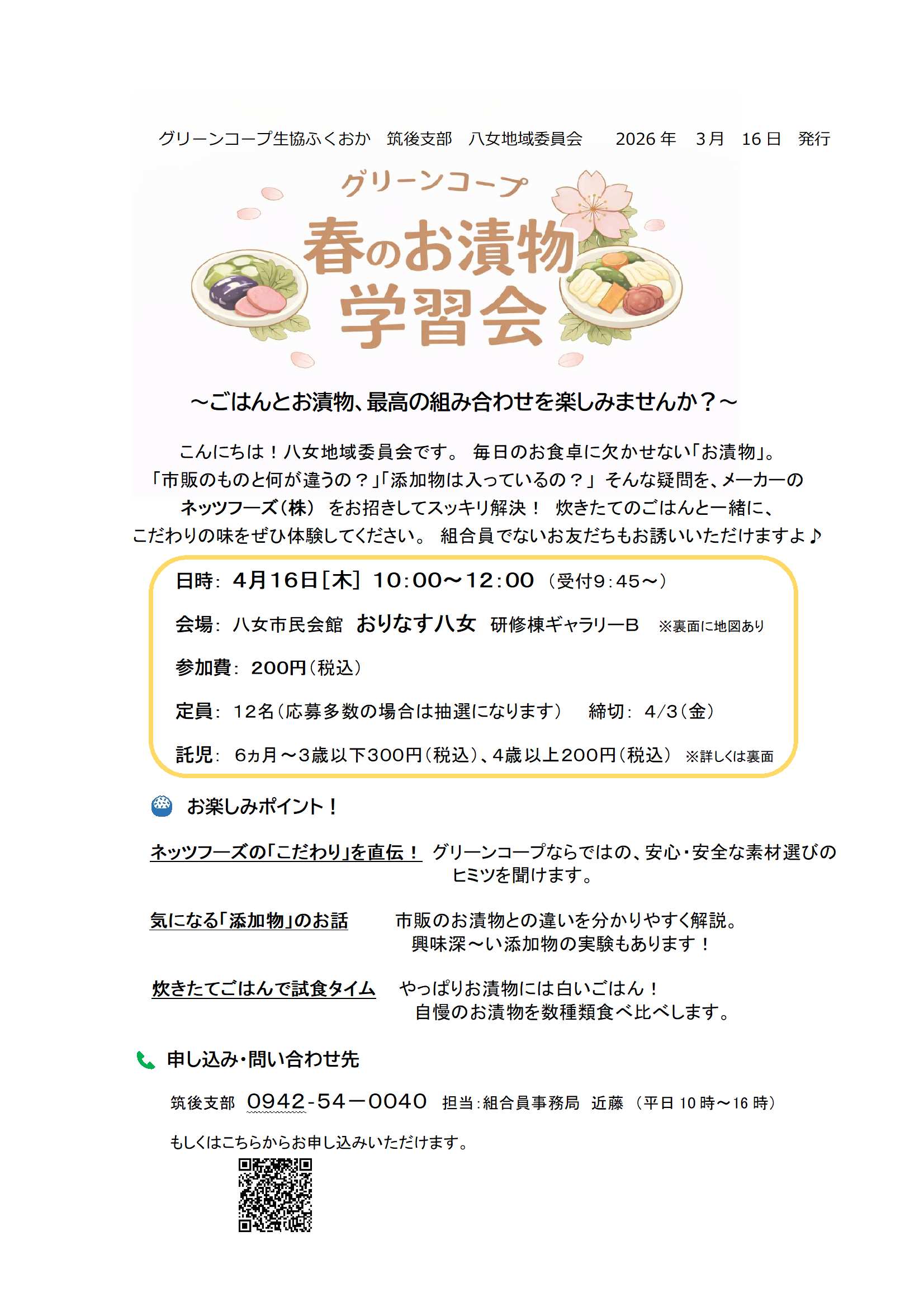 グリーンコープ生協ふくおか筑後支部 0942-54-0040 組合員事務局 担当:近藤