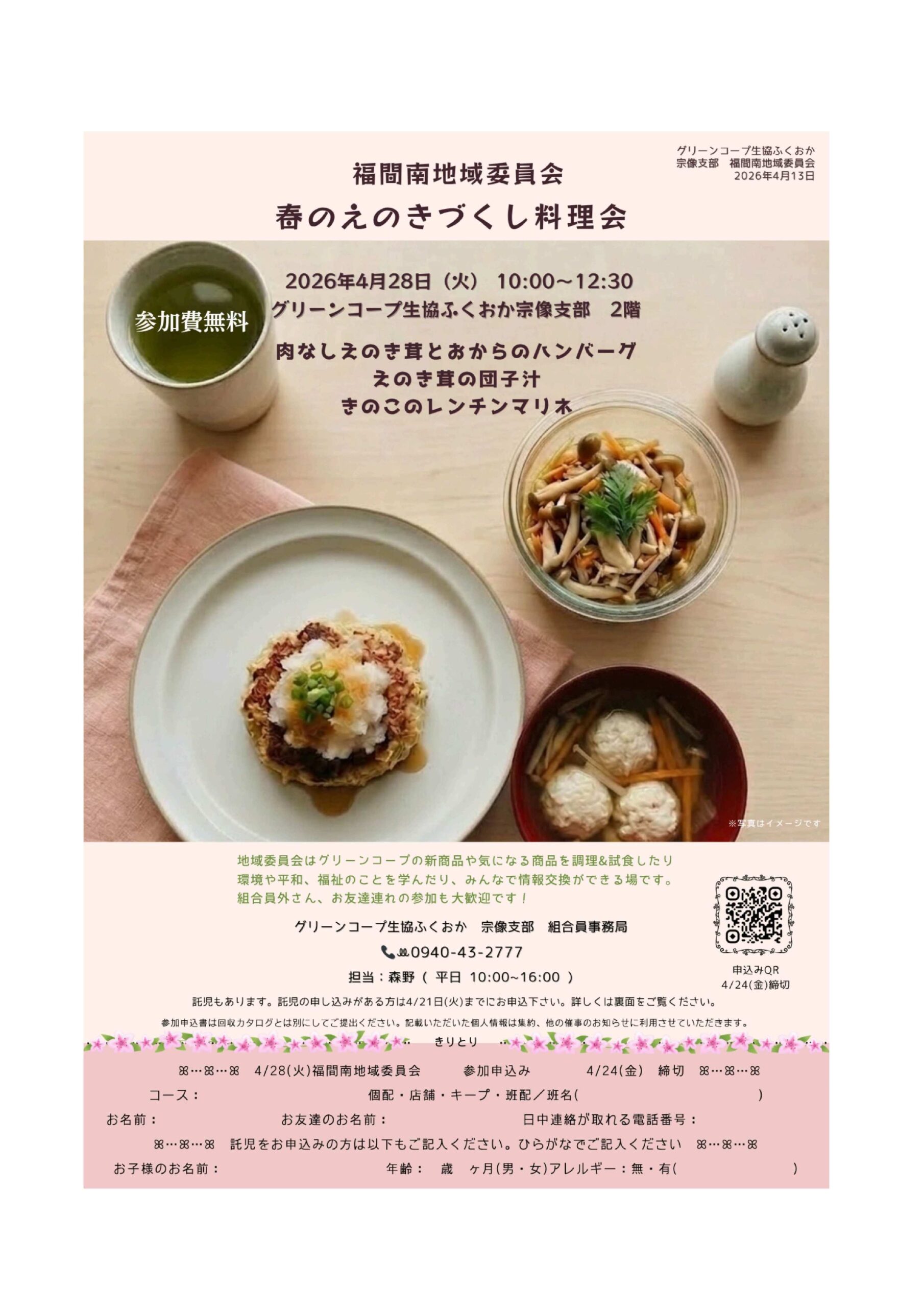 - 宗像支部組合員事務局 担当:森野 ☎0940-43-2777(平日10:00~16:00)