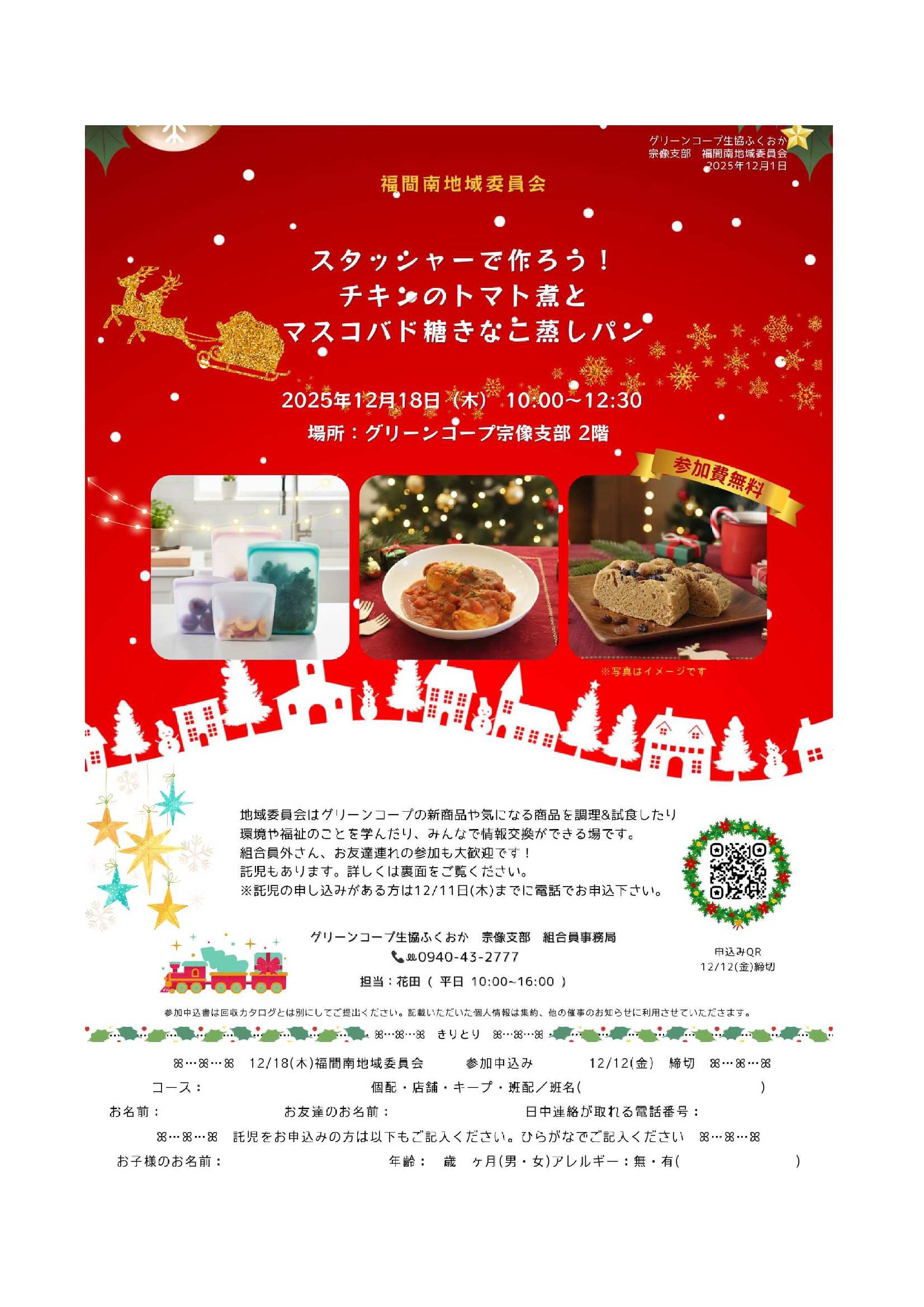 〈福間南地域対象エリアにお住まいの組合員と組合員ではないお友達がご参加いただけます〉