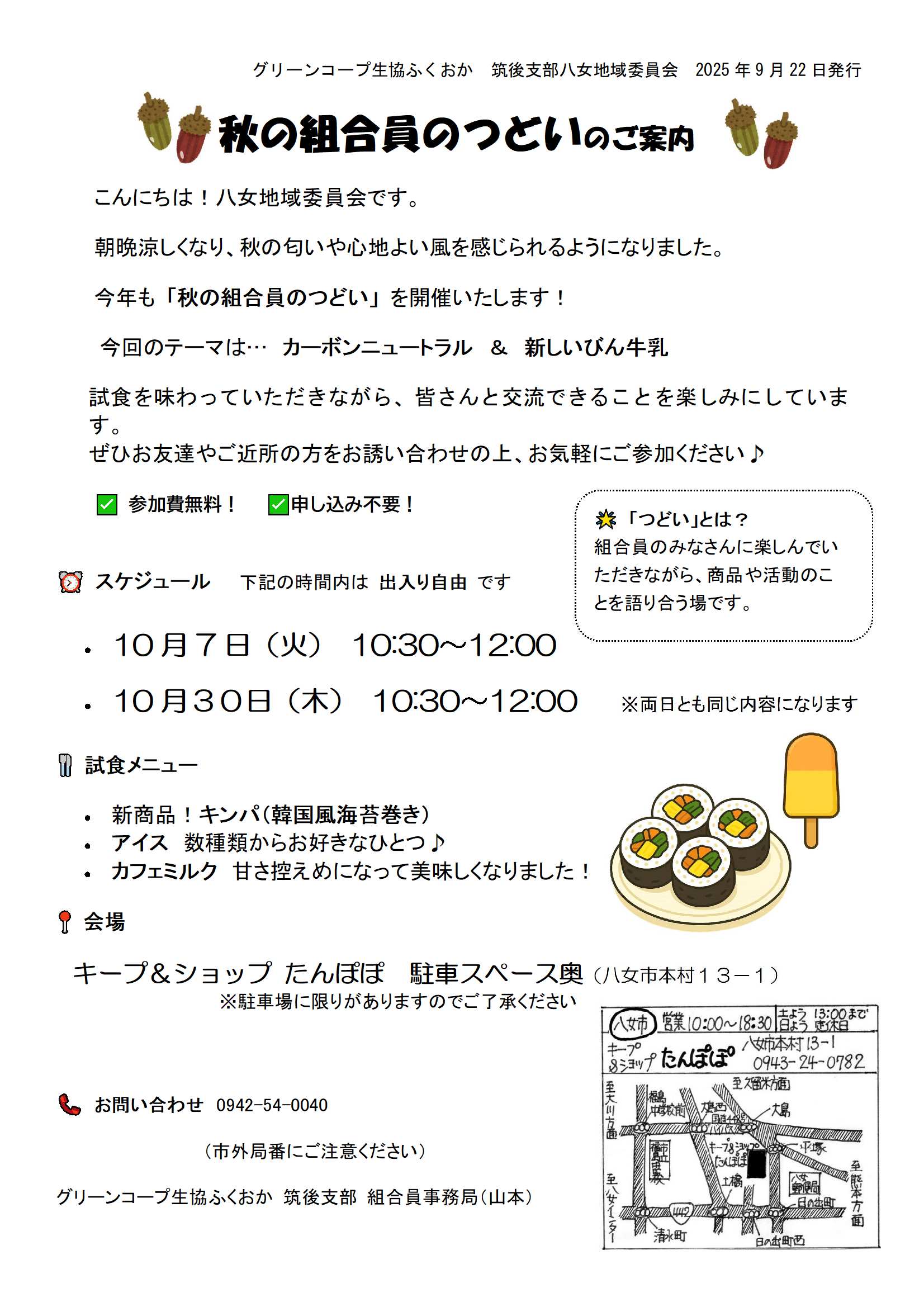 グリーンコープ生協ふくおか筑後支部 0942-54-0040 担当:山本