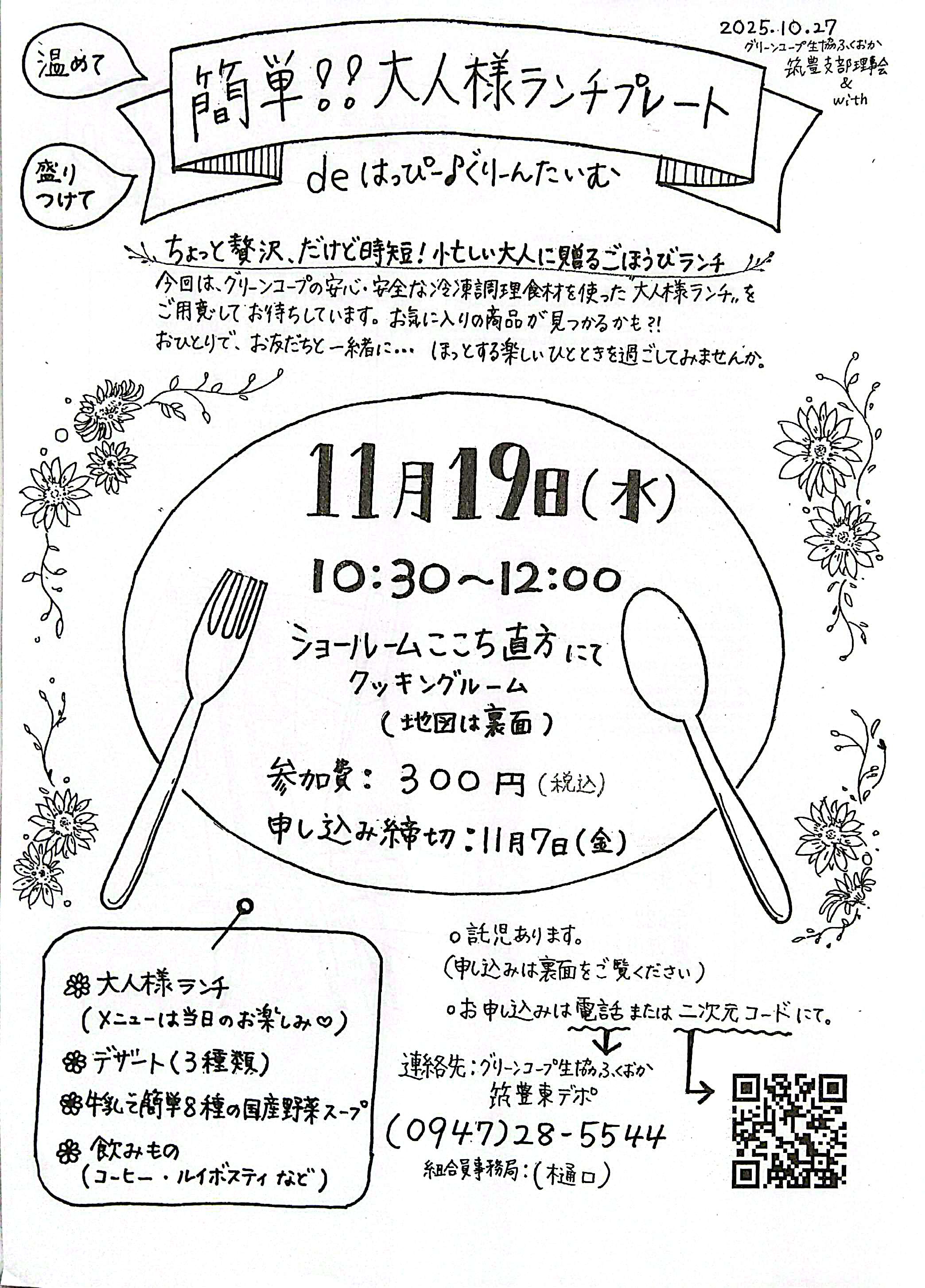- 11月7日(金) 締め切り日までにQR、もしくはお電話にてお申込み下さい