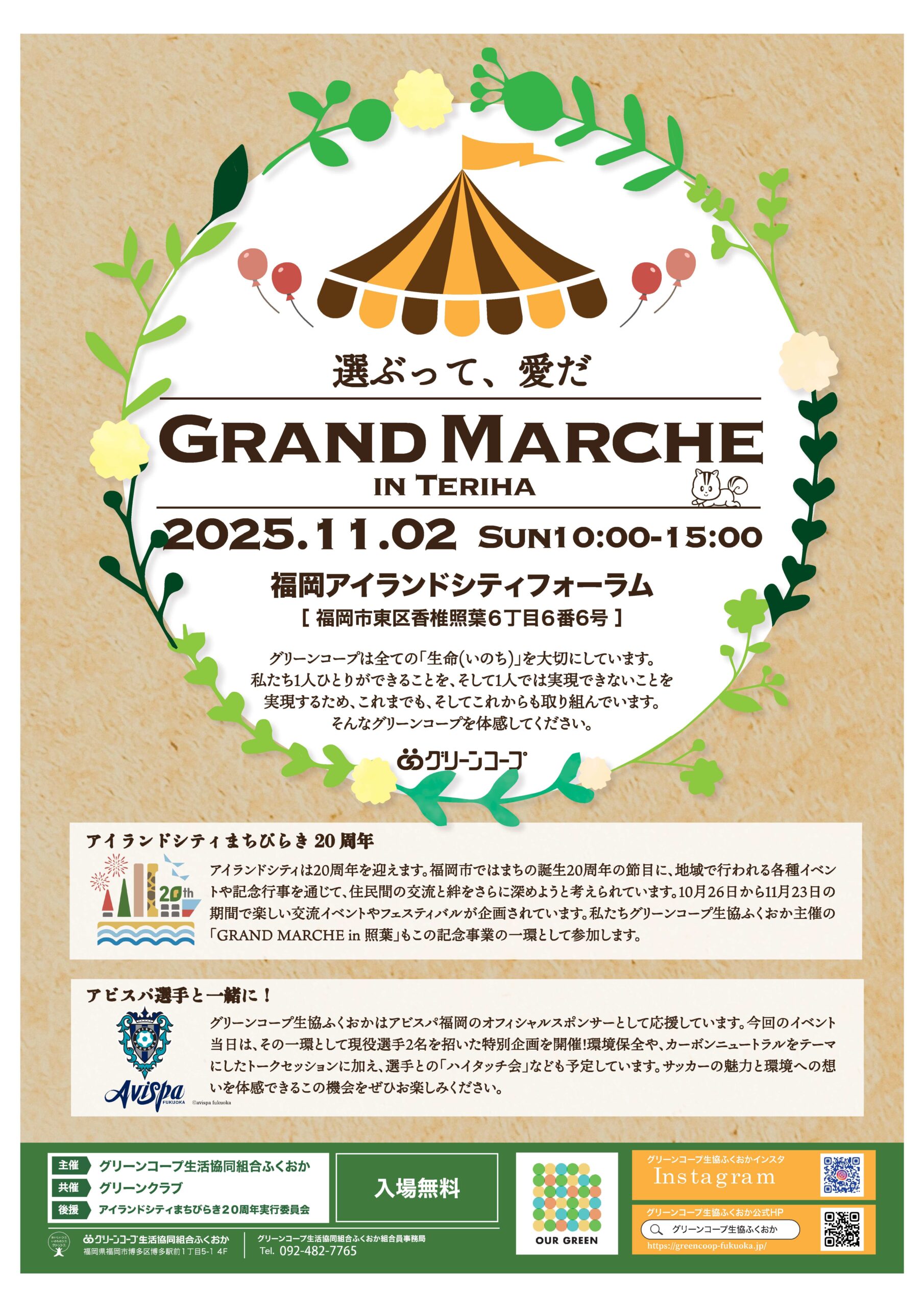 私たちグリーンコープの生協ふくおか主催の「グランマルシェ in 照葉」もこの記念事業の一環として参加します。