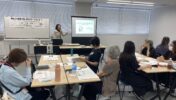 10月26日(日) 久留米支部では恒例の「体験田交流会」で稲刈りを行いました。初めて鎌を持つ参加者も多く、生産者に教わりながら刈り取っていきました。元気いっぱいの子ども達は、刈り取った稲を運んだり虫を追いかけたりと、めったに入ることのない田んぼの中を楽しんでいました。稲刈りのあとは公民館に移動し、びん牛乳と赤とんぼ米を使った玄米チョコ(ちょことんぼ)を食べて絵本タイム。お米になった気持ちを味わう斬新なお話にみんな夢中になっていました。「あっという間だった」「楽しかった!」の声に、産地交流の良さを改めて感じました。