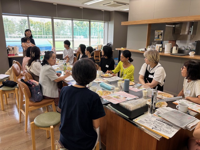 9月25日(木)久留米大学地域連携センターつながるめで、「おしゃべり茶話会」を開催しました。(株)丸きんまんじゅうのフルーツロールケーキや塩豆大福を食べながら、グリーンコープの福祉や福祉活動組合員基金(100円基金)について学びました。小さなお子様を子育て中の方も多く参加していただき、100円基金からの助成を受けて開催している子育て講演会や子育てサークルのご案内もしました。ふくしサービスセンターグリーンピースからは、訪問介護や生活応援の紹介もしました。おすすめ商品の話とびん牛乳の話を試食から紹介でき、みんなでグリーンコープの商品のおいしさも改めて実感することができました。あっという間に終わったのでまた定期的に開催してほしいとのお声を多数いただきました。