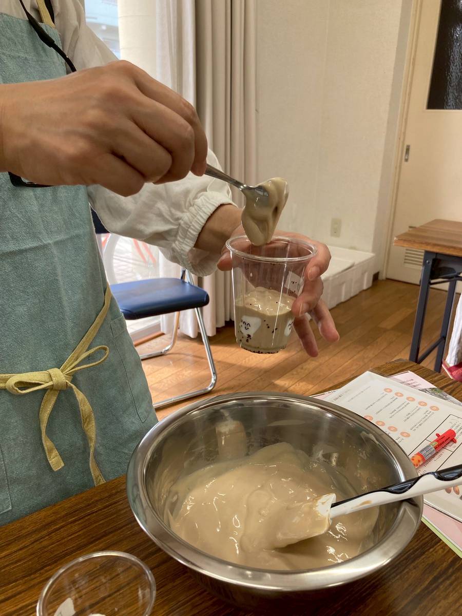 秋の組合員のつどいで「a bit..」お菓子教室パティシエ徳重先生によるお菓子教室つどいを開催しました。GC商品を利用したカフェミルクムースを皆で作りましたが、簡単な作業でも丁寧に時間をかける事でお店のような味に仕上がることにビックリ感動!参加者の皆さんからも、説明が分かり易かった・子どもと作ってみたい・とっても美味しかった、と大好評で終える事が出来ました☆また秋の組合員のつどいテーマ【カーボンニュートラル】【新びん牛乳】に関しても皆さんの様々な考えを知る良い機会となりました。